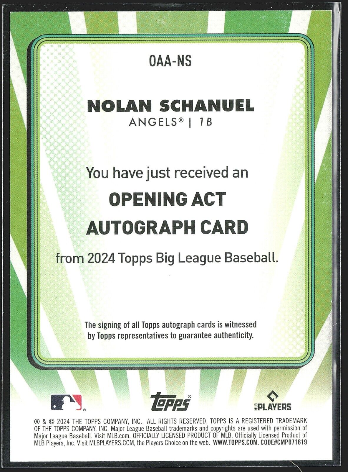 2024 Nolan Schanuel Topps Big League Rc Green Auto Angels