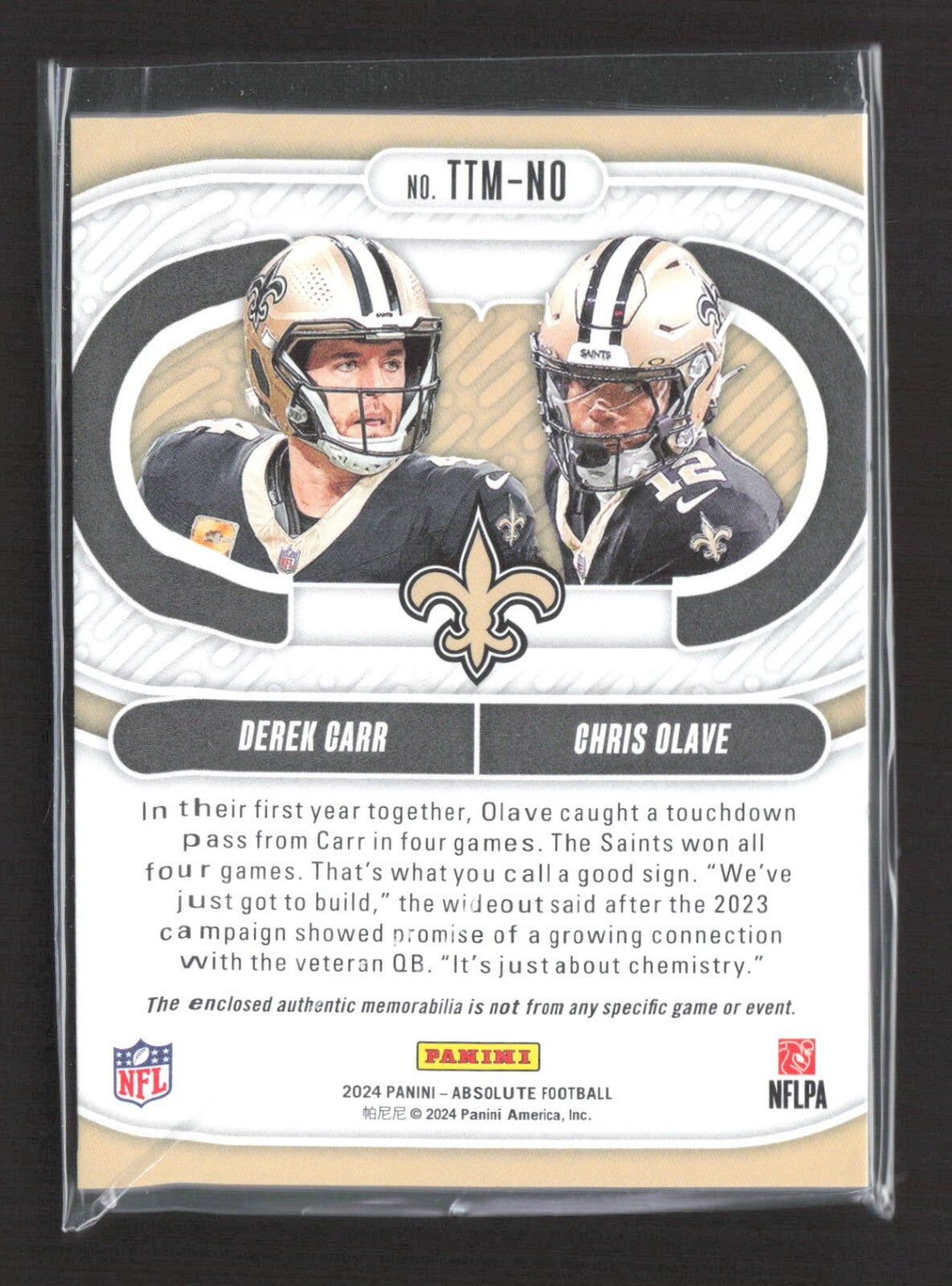 2024 Panini Absolute Team Tandem Derek Carr Chris Olave #TTM-NO Patch /49