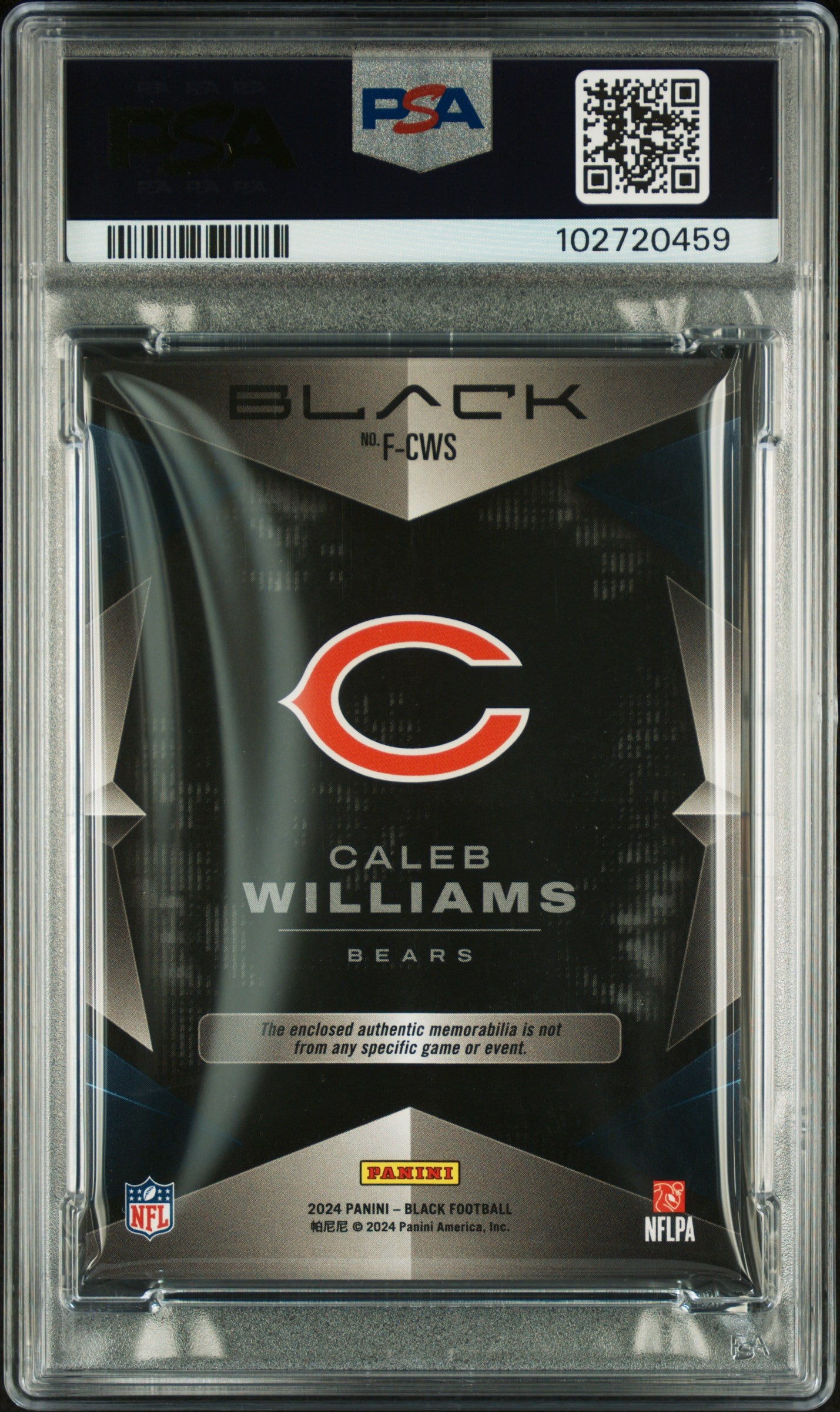2024 Panini Black Futuristic Relics Caleb Williams #FCWS PSA 8