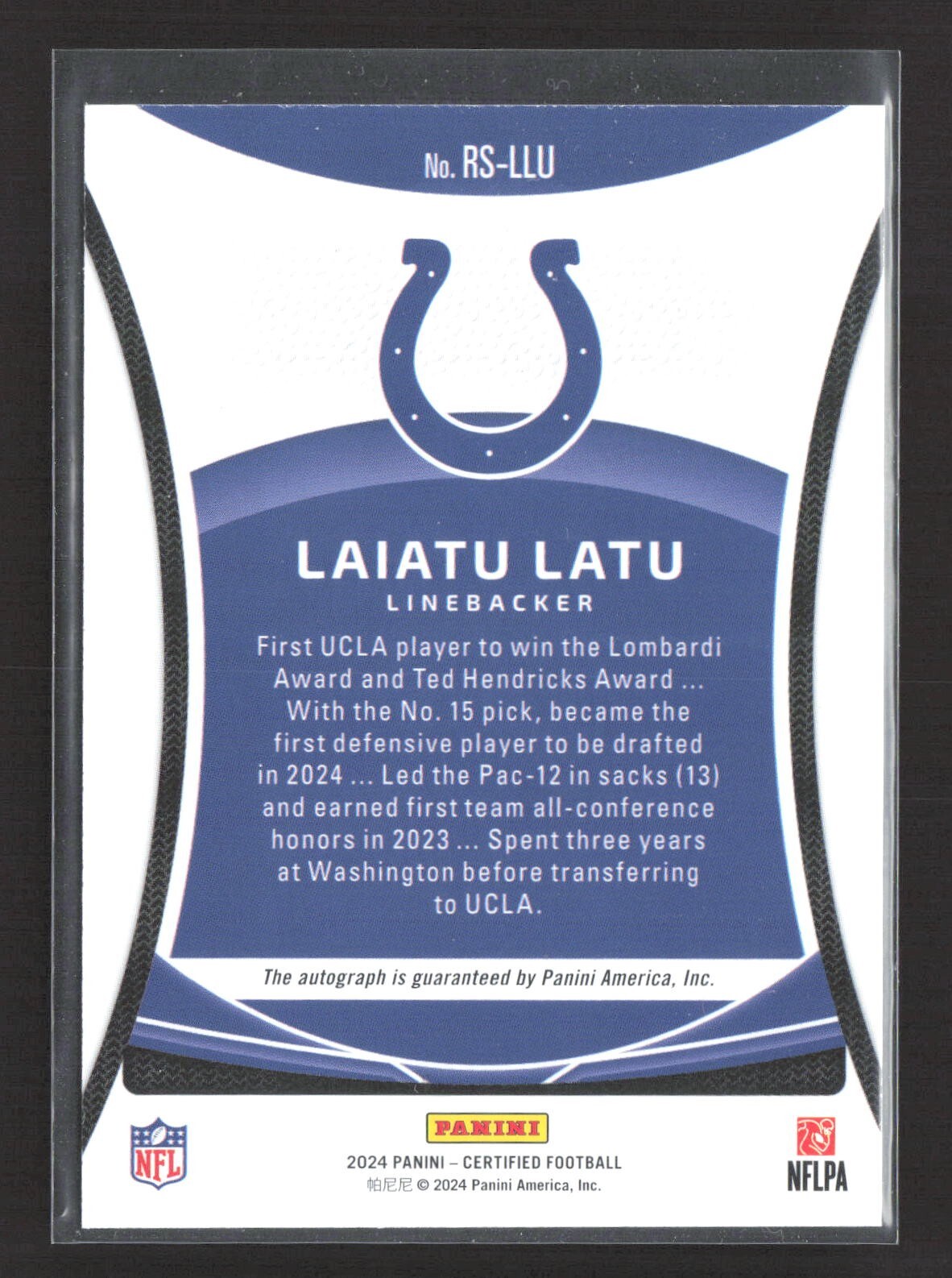 2024 Panini Certified - Rookie Signatures Laiatu Latu #RS-LLU Rc Auto /149