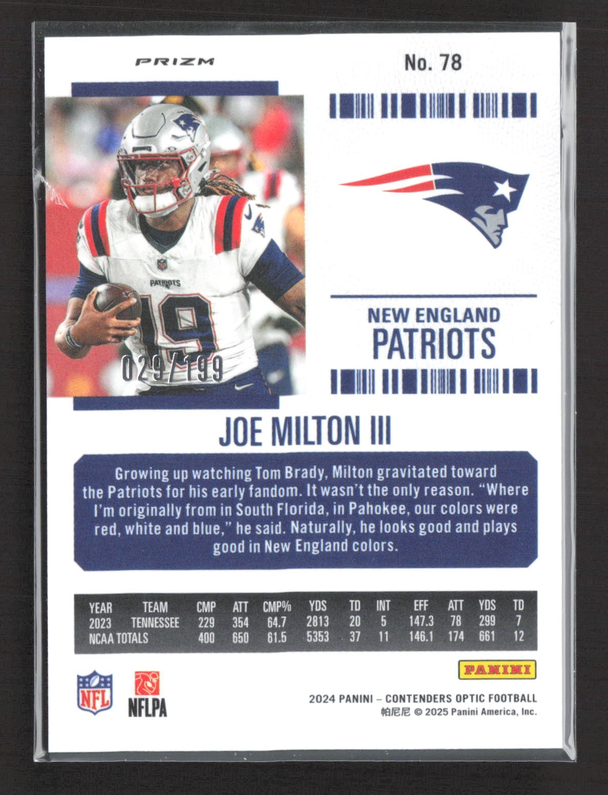 2024 Panini Contenders Optic Rookie Ticket Joe Milton III #78 Red Prizm /199