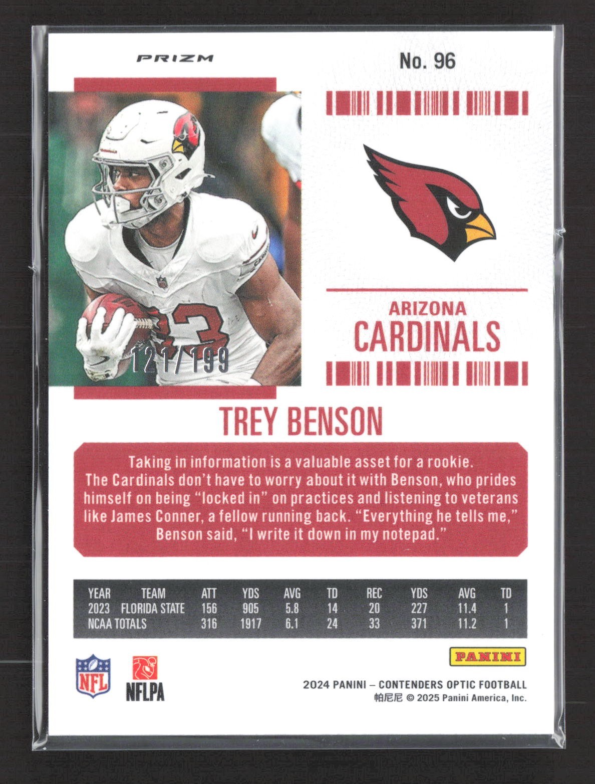 2024 Panini Contenders Optic Rookie Ticket Trey Benson #119 Red Prizm /199
