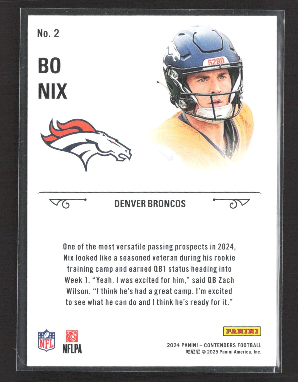 2024 Panini Contenders Rc Stallions Bo Nix #2 (RC)