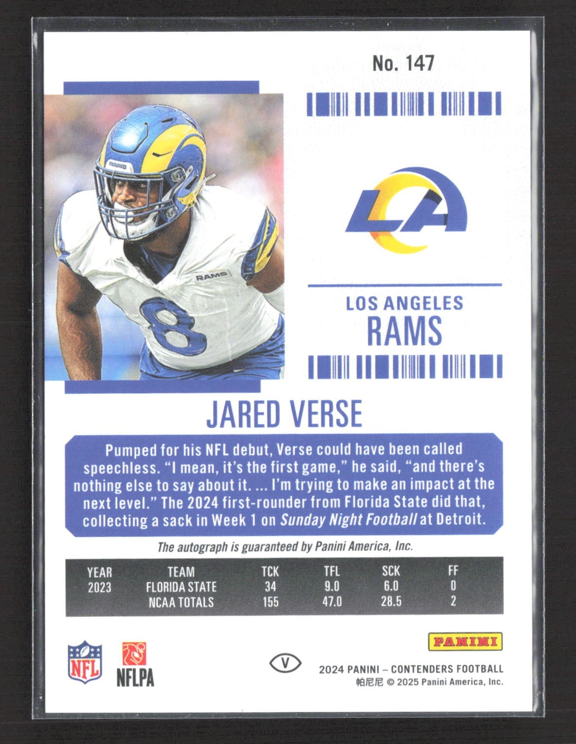 2024 Panini Contenders - Rookie Ticket Jared Verse #147 Rc Auto Variation