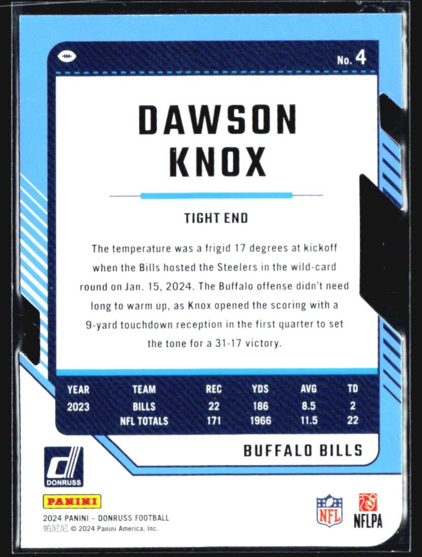 2024 Panini Donruss - Dawson Knox #4 Holo Die Cut Press Proof /75