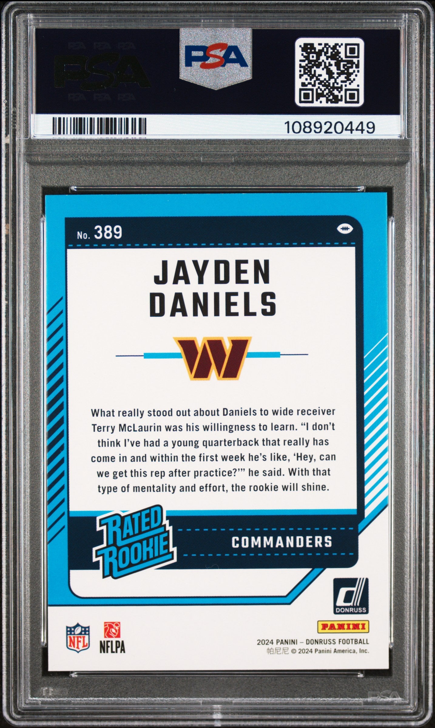 2024 Panini Donruss Jayden Daniels #389 Press Proof Red PSA 7
