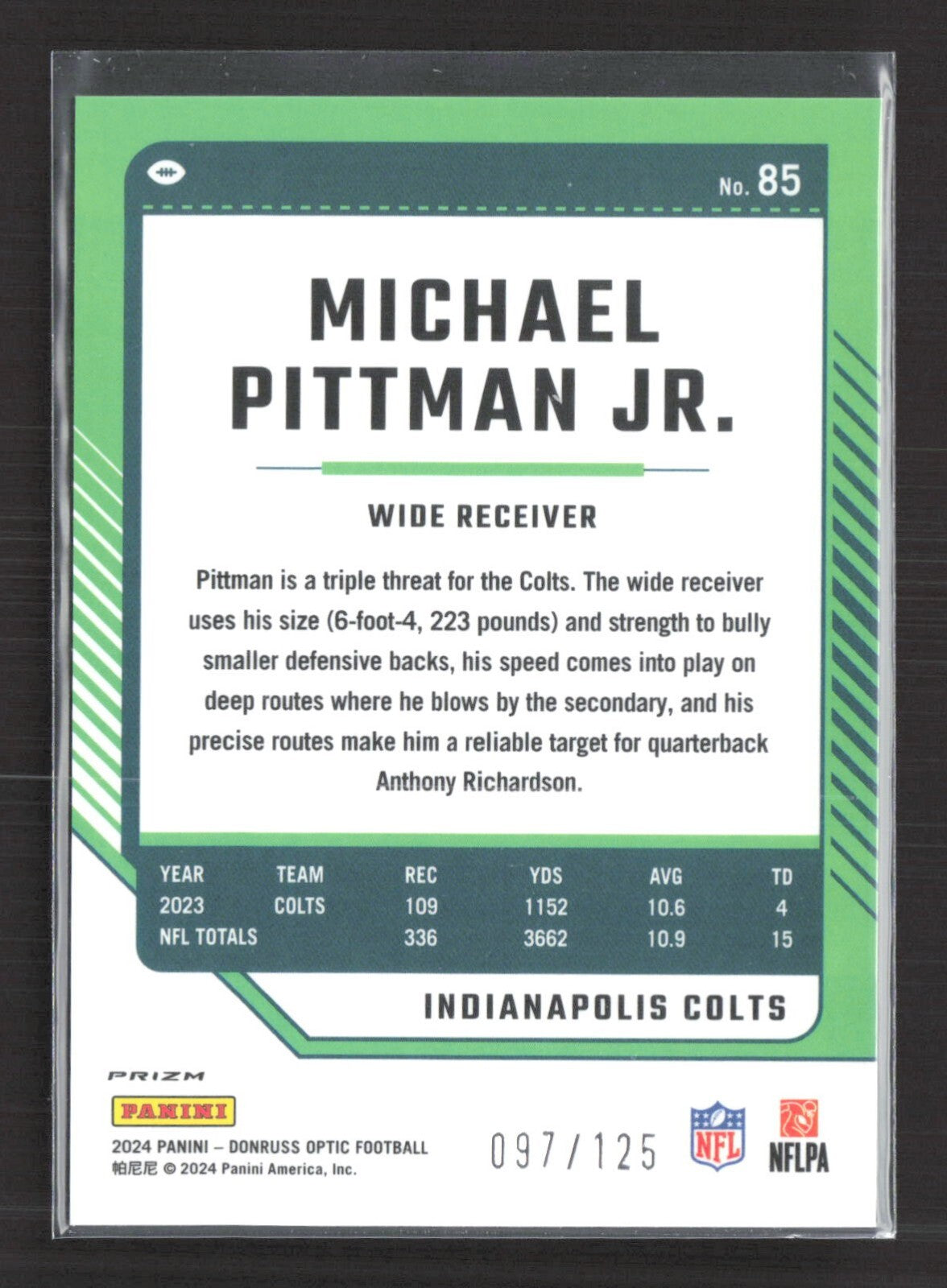 2024 Panini Donruss Optic - Michael Pittman Jr. #85 Red /125