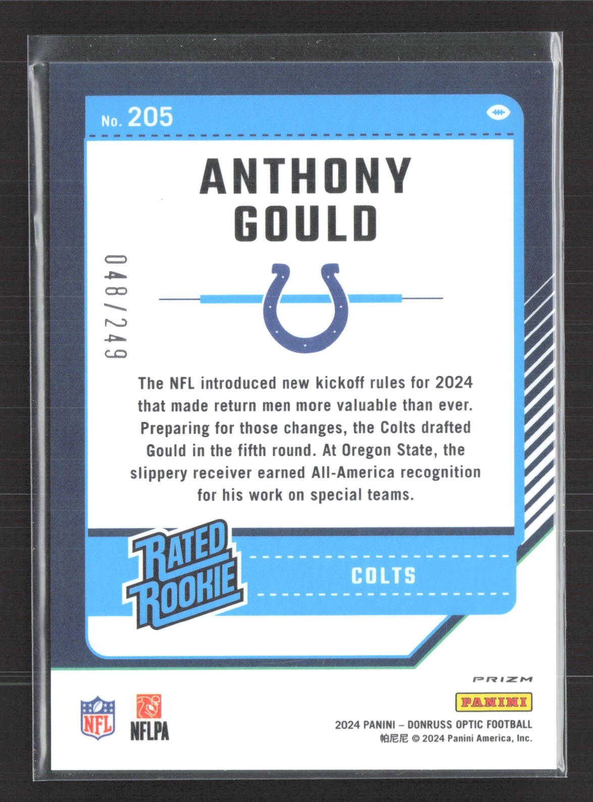 2024 Panini Donruss Optic Rated Rookie Anthony Gould #205 Orange Prizm /249 RC