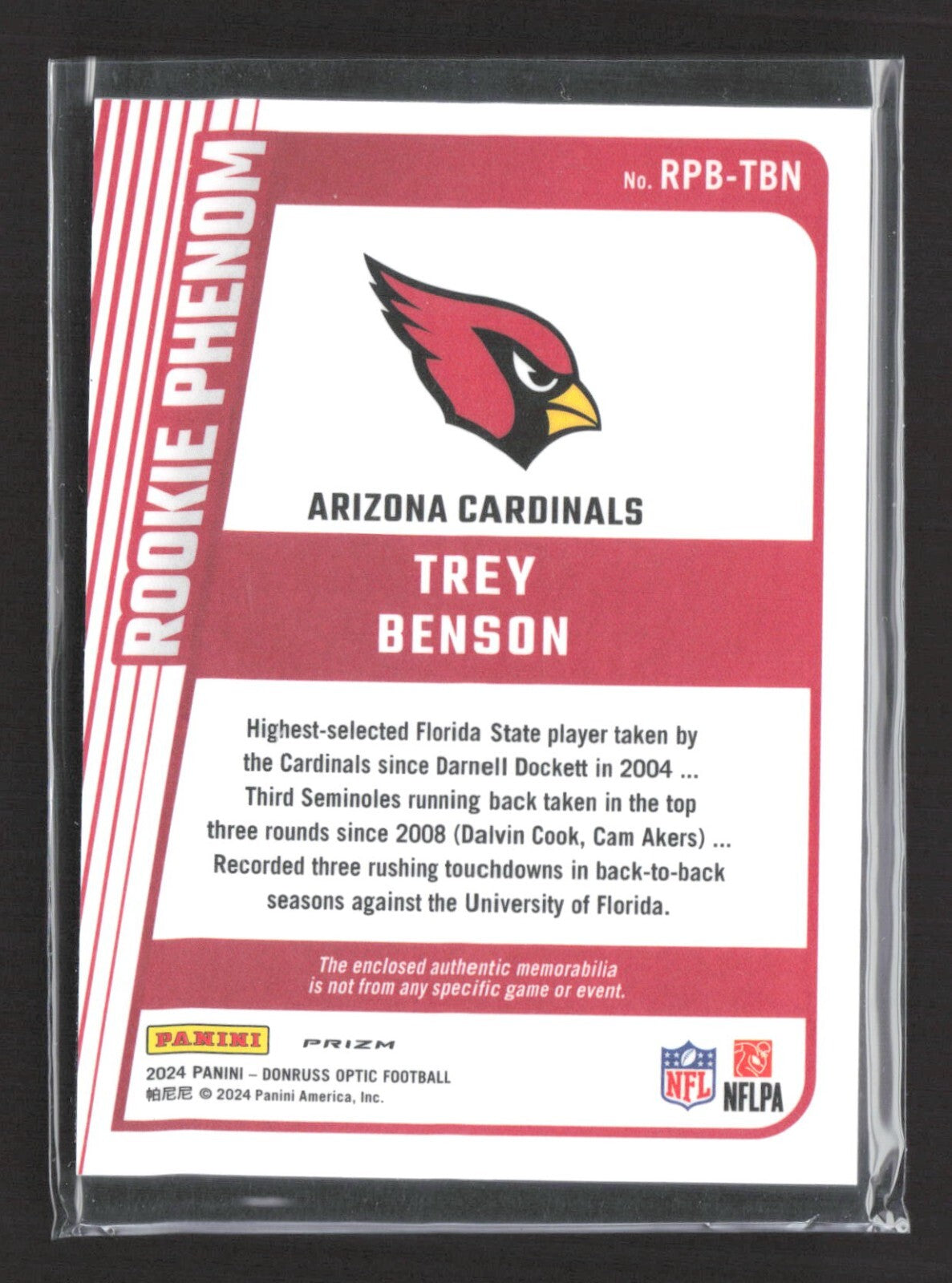 2024 Panini Donruss Optic Rookie Phenoms Trey Benson #RPB-TBN Blue Hyper Jersey