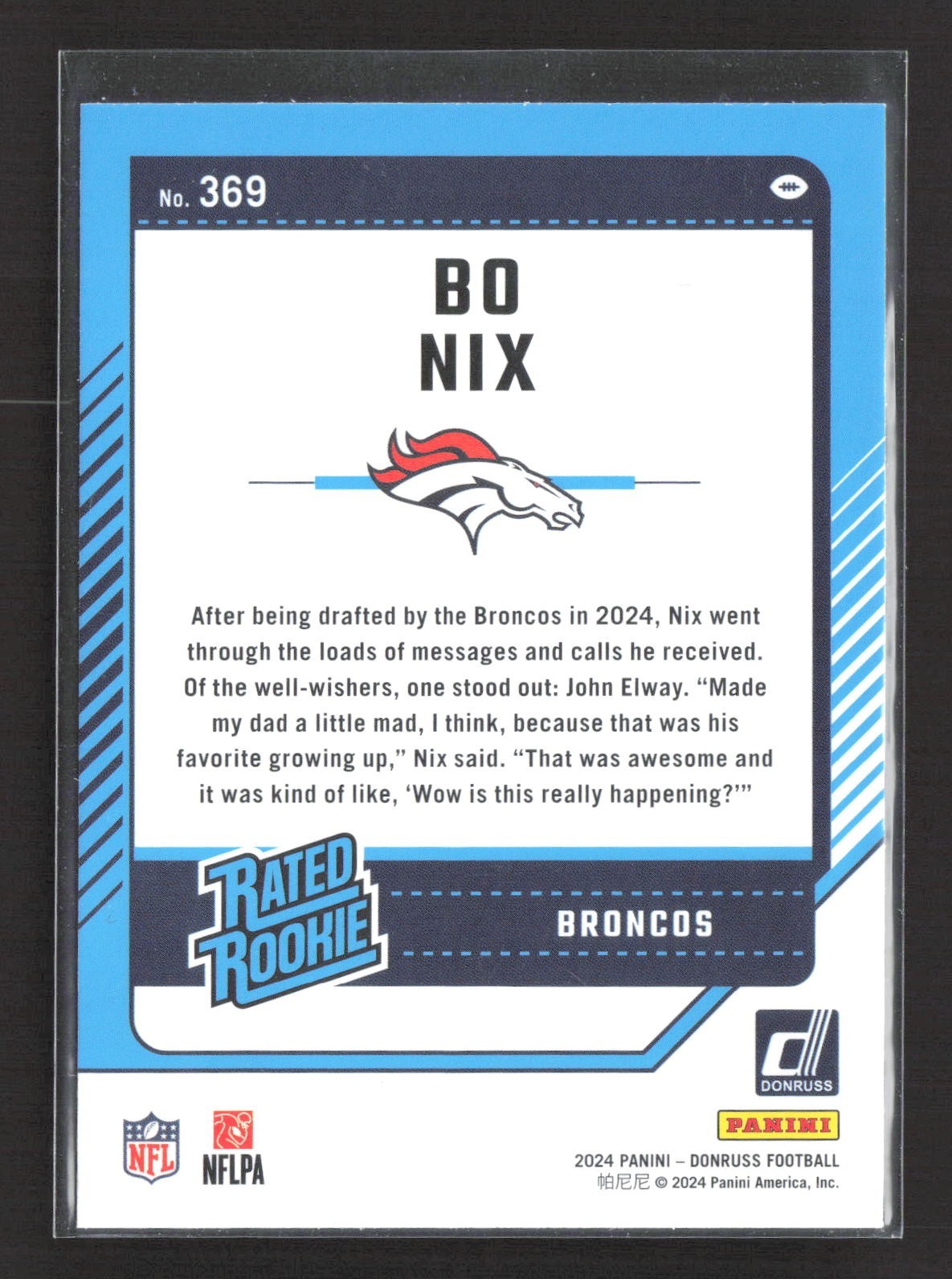 2024 Panini Donruss Rated Rookie Bo Nix #369