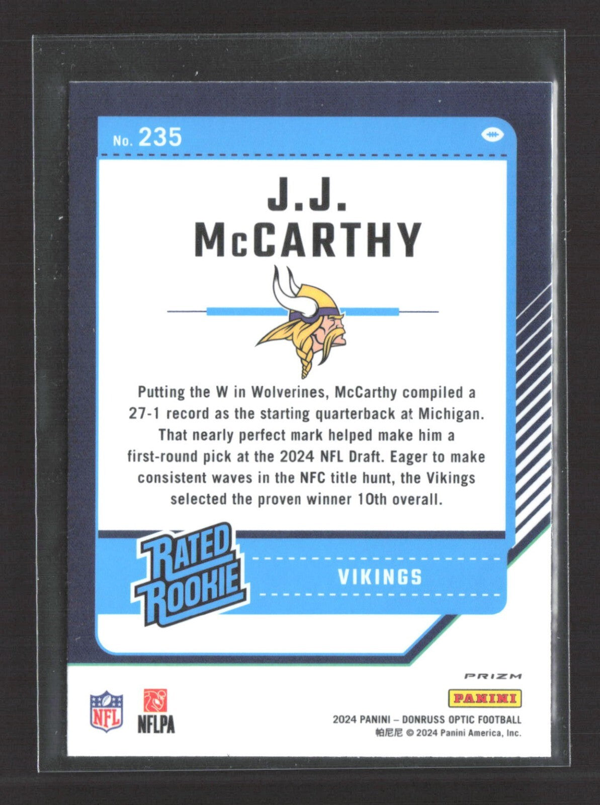 2024 Panini Donruss - Rated Rookie J.J. McCarthy #235 Optic Pink Prizm (RC)