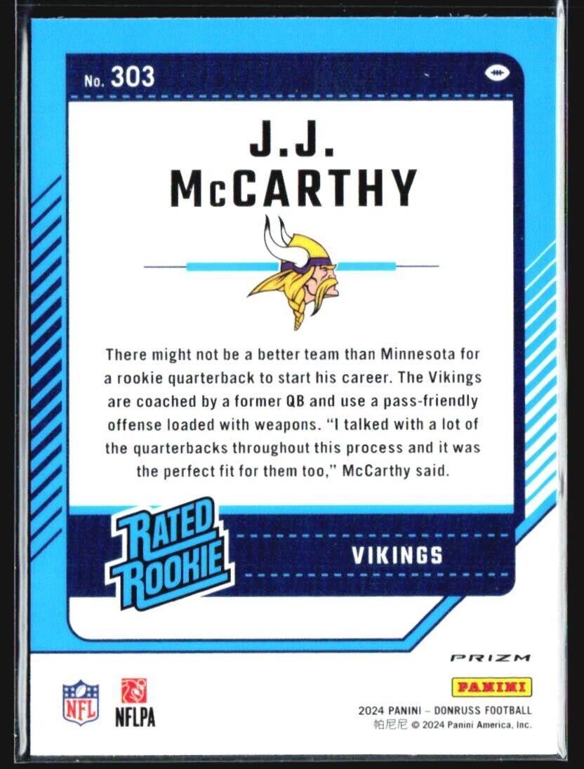 2024 Panini Donruss Rated Rookie J.J. McCarthy #303 Optic Preview Blue Scope Rc