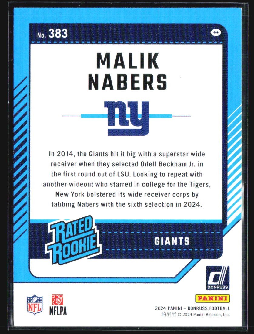 2024 Panini Donruss - Rated Rookie Malik Nabers #383 (RC)