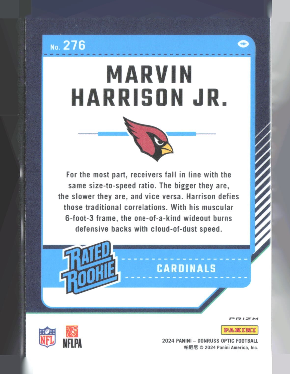 2024 Panini Donruss Rated Rookie Marvin Harrison Jr. #276 Optic Blue Hyper
