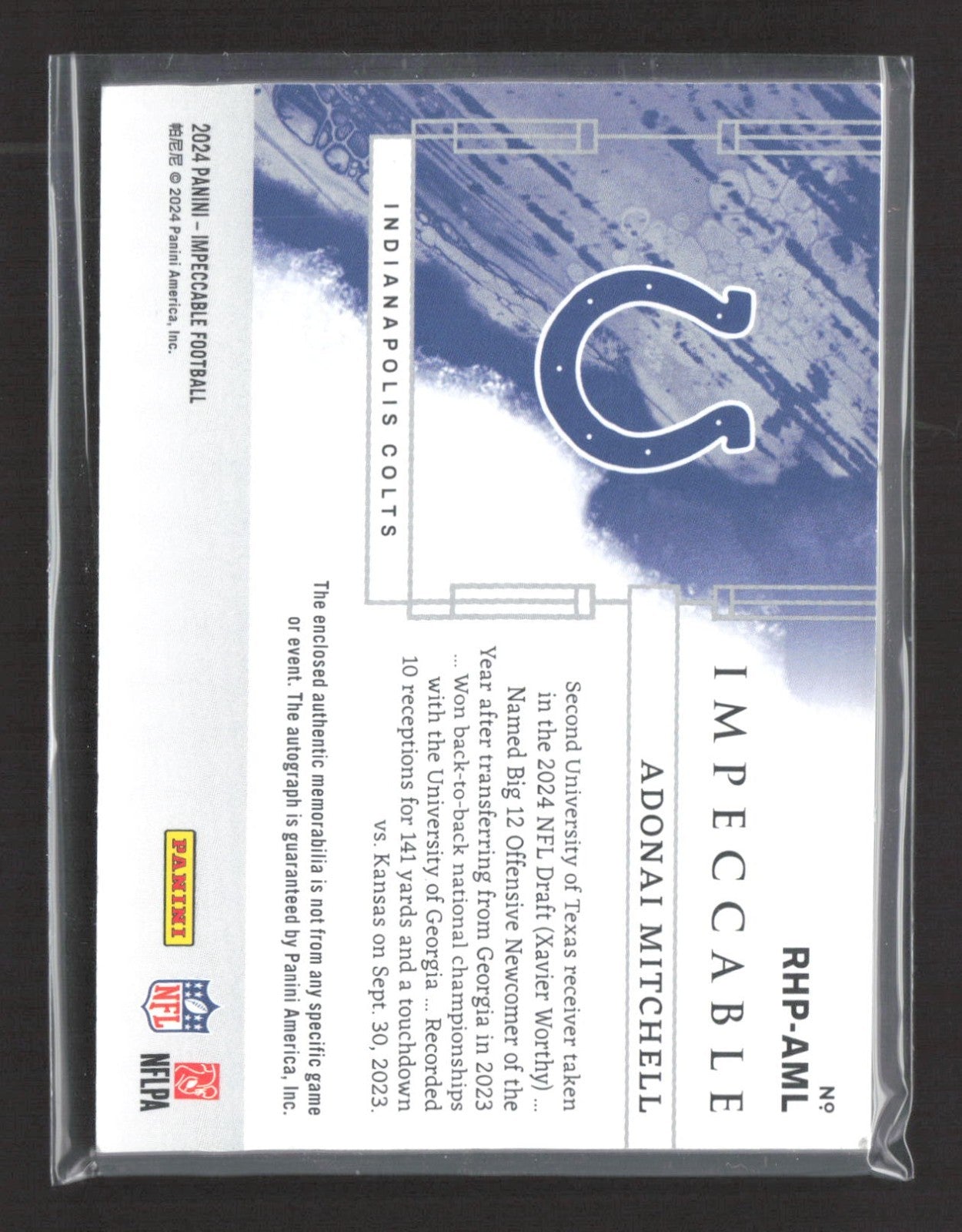 2024 Panini Impeccable Elégance Rookie Auto Adonai Mitchell Helmet & Patch /75
