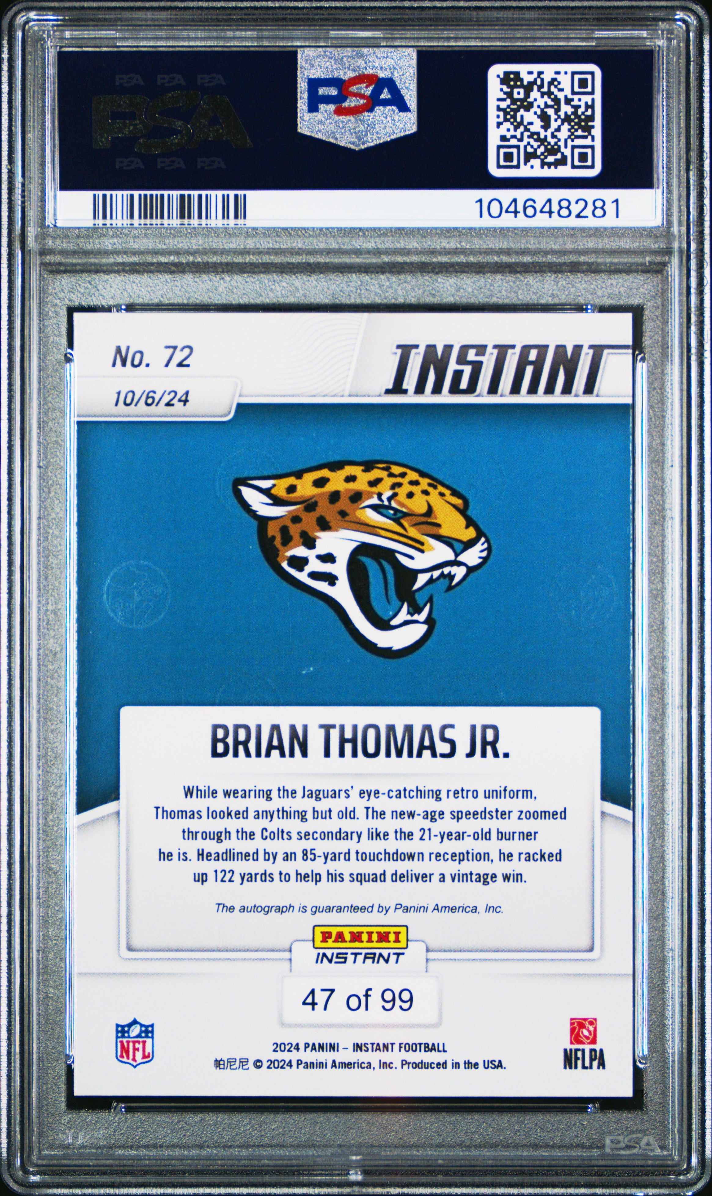 2024 Panini Instant NFL Brian Thomas JR. #72 Autograph PSA 10