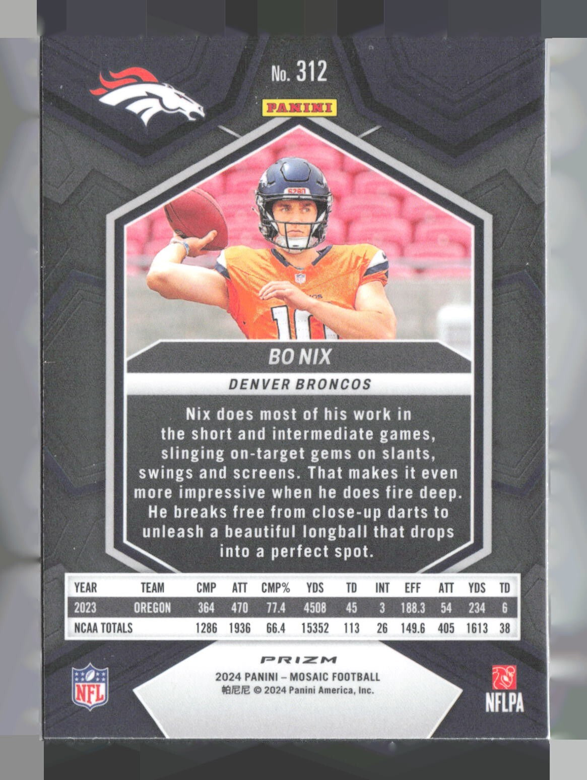 2024 Panini Mosaic - Rookies Bo Nix #312 (RC) Silver