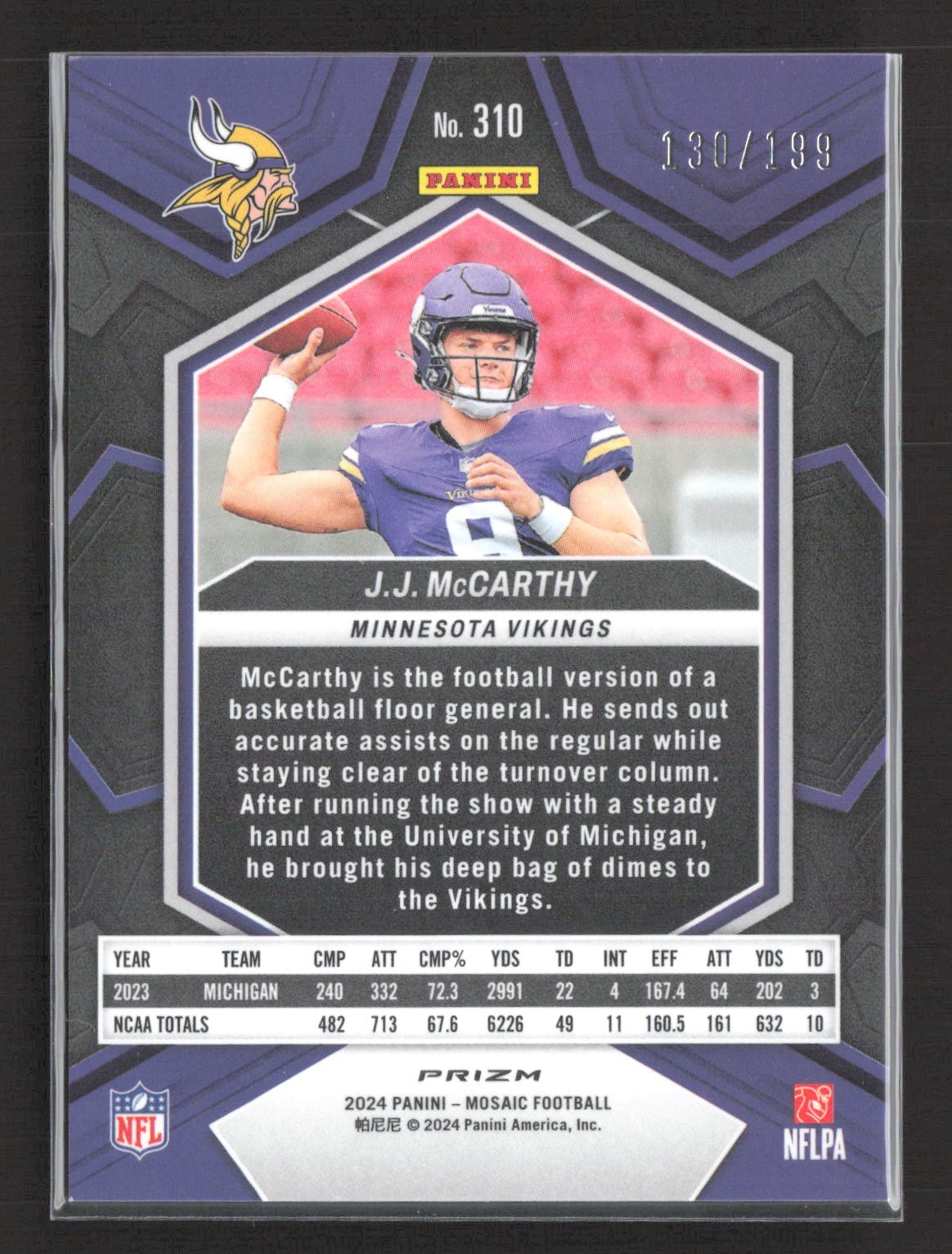 2024 Panini Mosaic - Rookies J.J. McCarthy #310 Orange Mosaic Prizm /199 (RC)