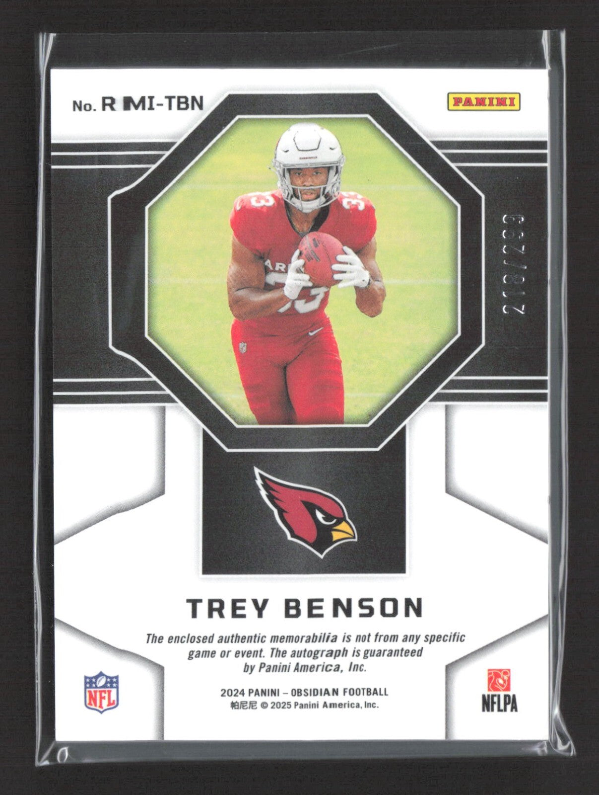 2024 Panini Obsidian - Rookie patch Auto Trey Benson #RMI-TBN /299