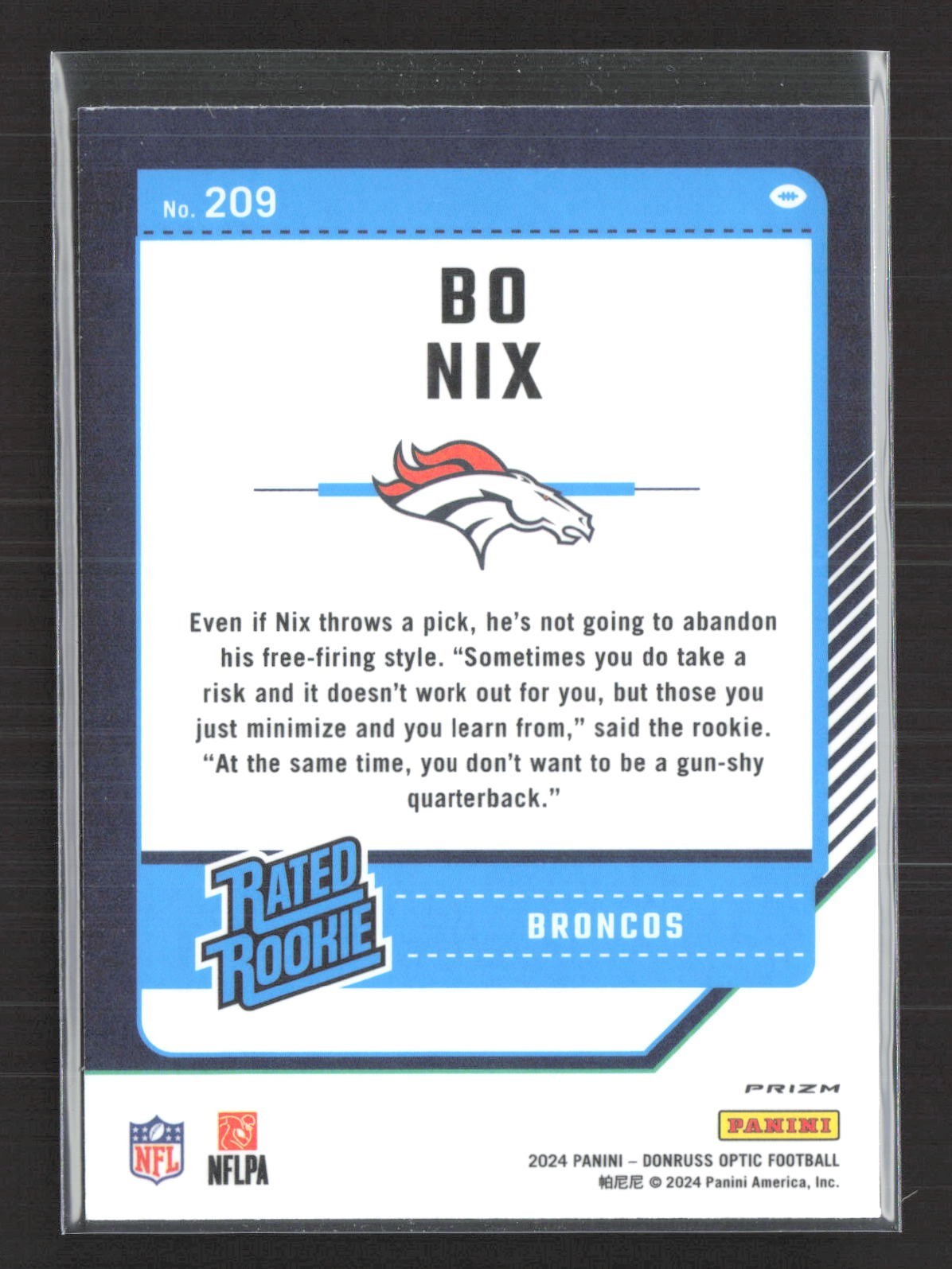 2024 Panini Optic Bo Nix Rated Rookie Blue Hyper #209