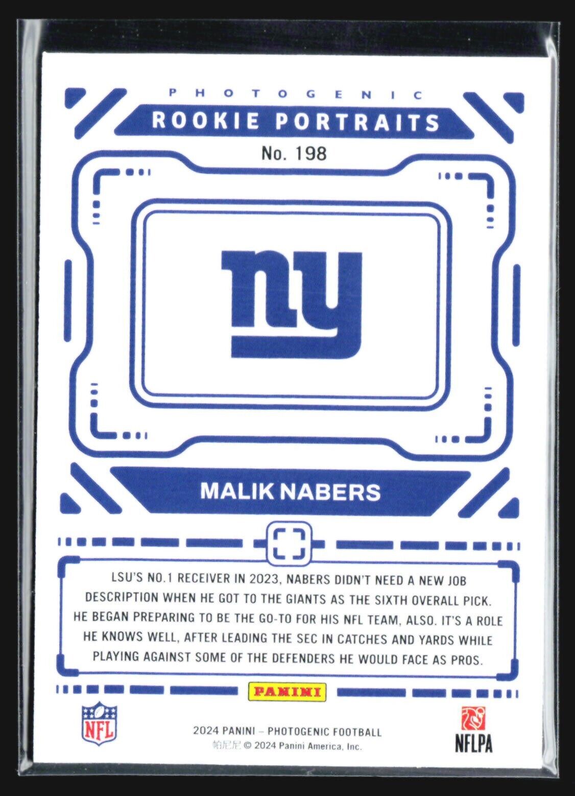 2024 Panini Photogenic Malik Nabers Rookie Portraits Rc #198