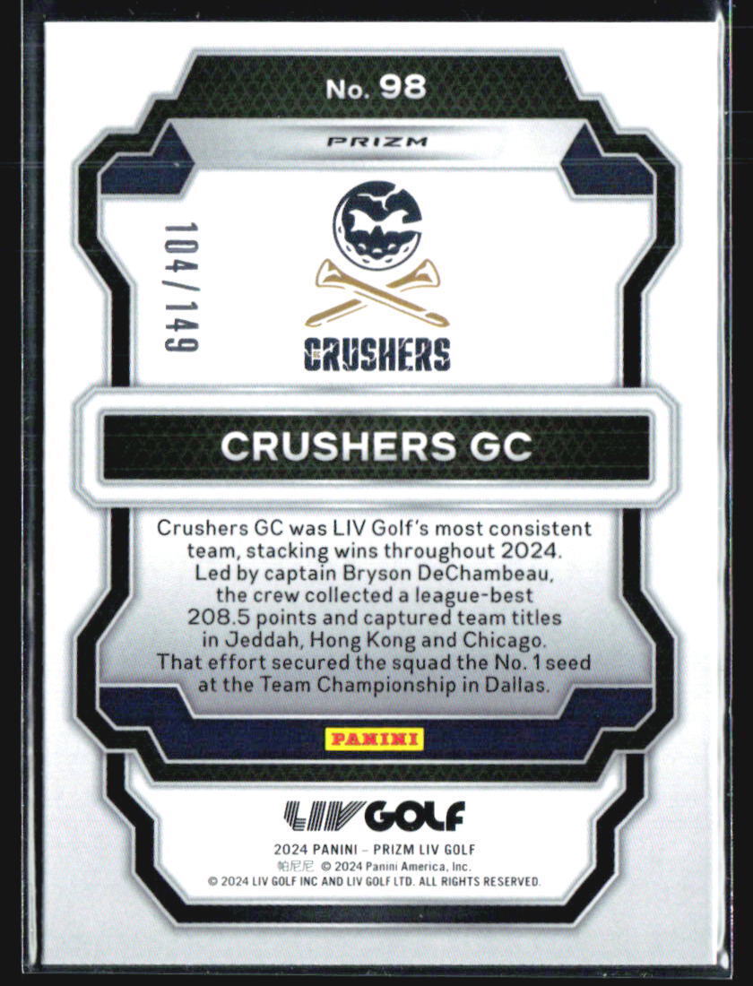 2024 PANINI PRIZM LIV GOLF #98 CRUSHERS GC RED PRIZM /149