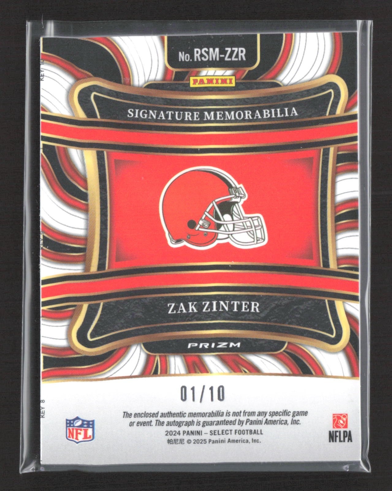 2024 Panini Select Rookie Zak Zinter #RSM-ZZR Gold Patch Auto /10
