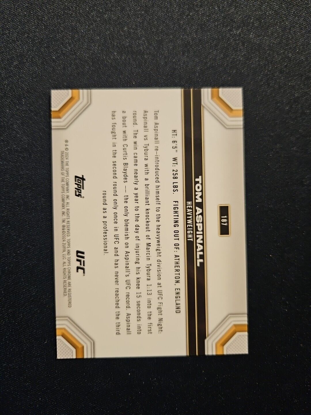 This 2024 Tom Aspinall Topps Chrome UFC Purple Refractor #187 is a must-have for any Mixed Martial Arts (MMA) fan... Read more