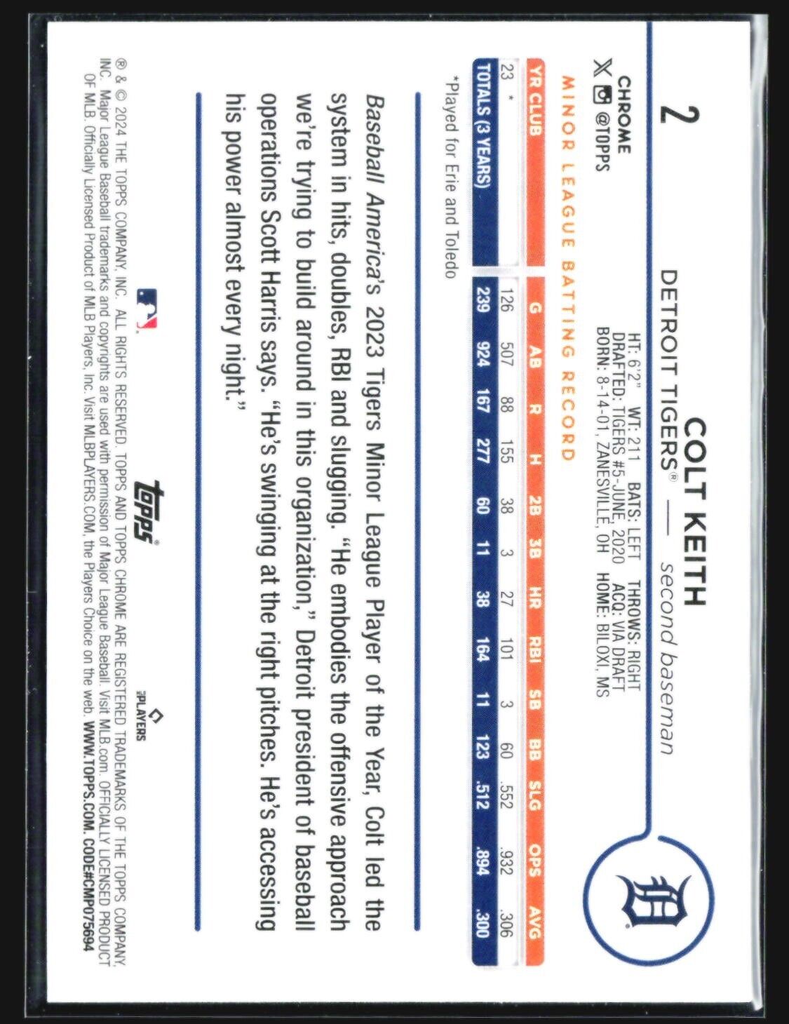 2024 Topps Chrome - #2 Colt Keith (RC)
