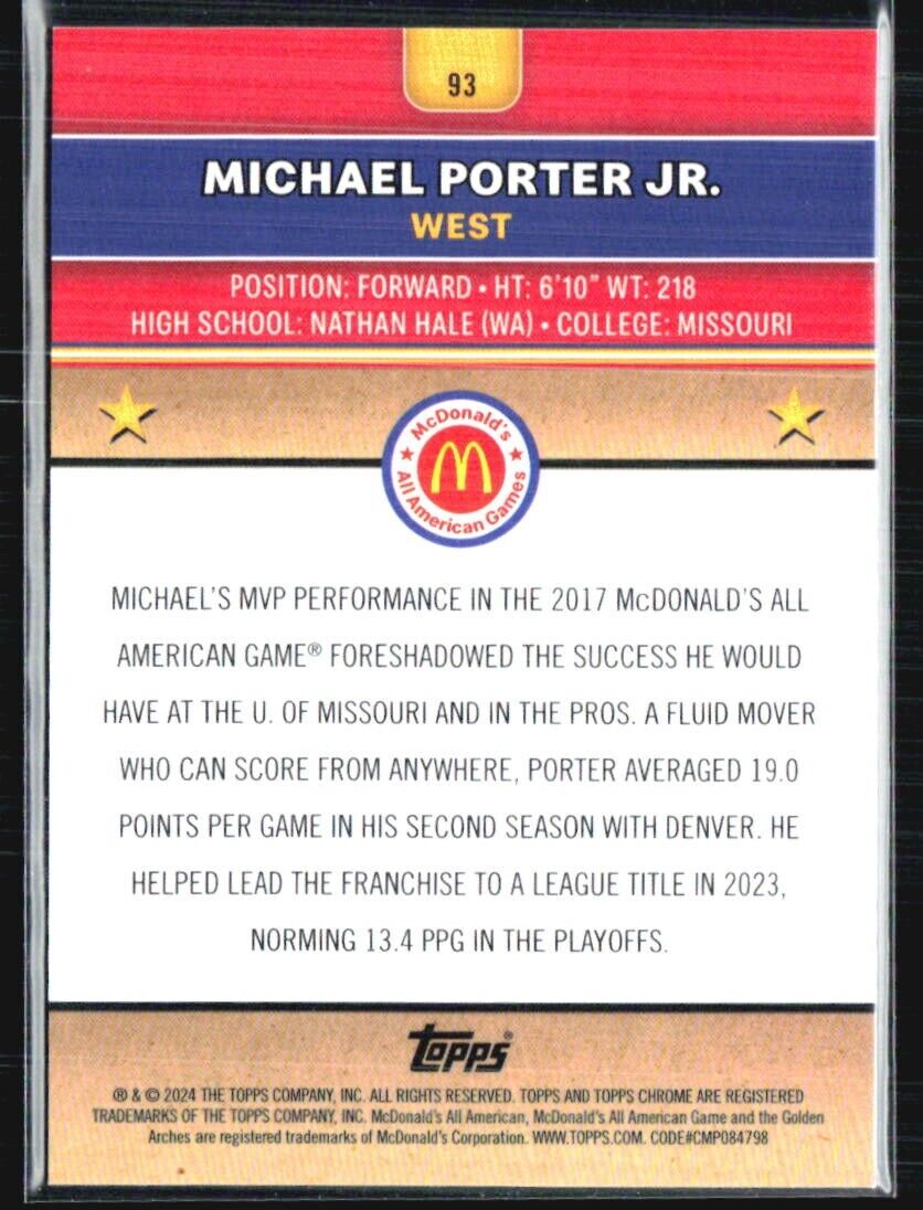 2024 Topps Chrome All American Michael Porter Jr Gold Refractor /50 #93