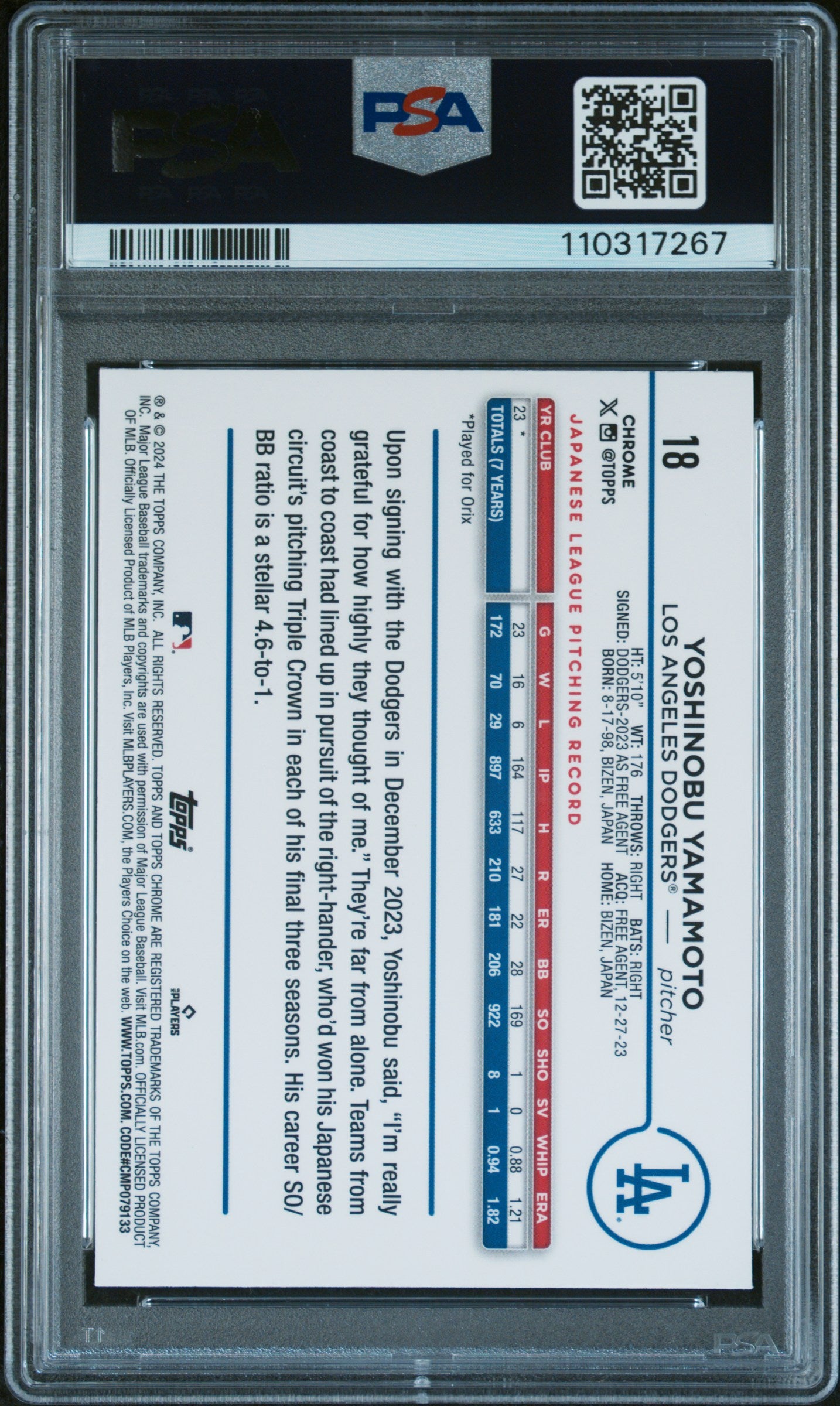 2024 Topps Chrome Logofractor Edition Yoshinobu Yamamoto #18 PSA 10