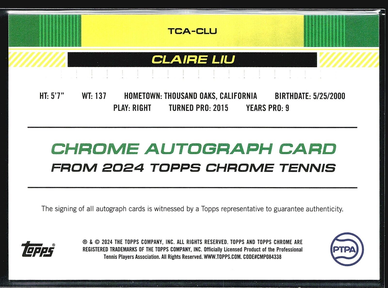 2024 Topps Chrome Tennis Auto Claire Liu #TCA-CLU