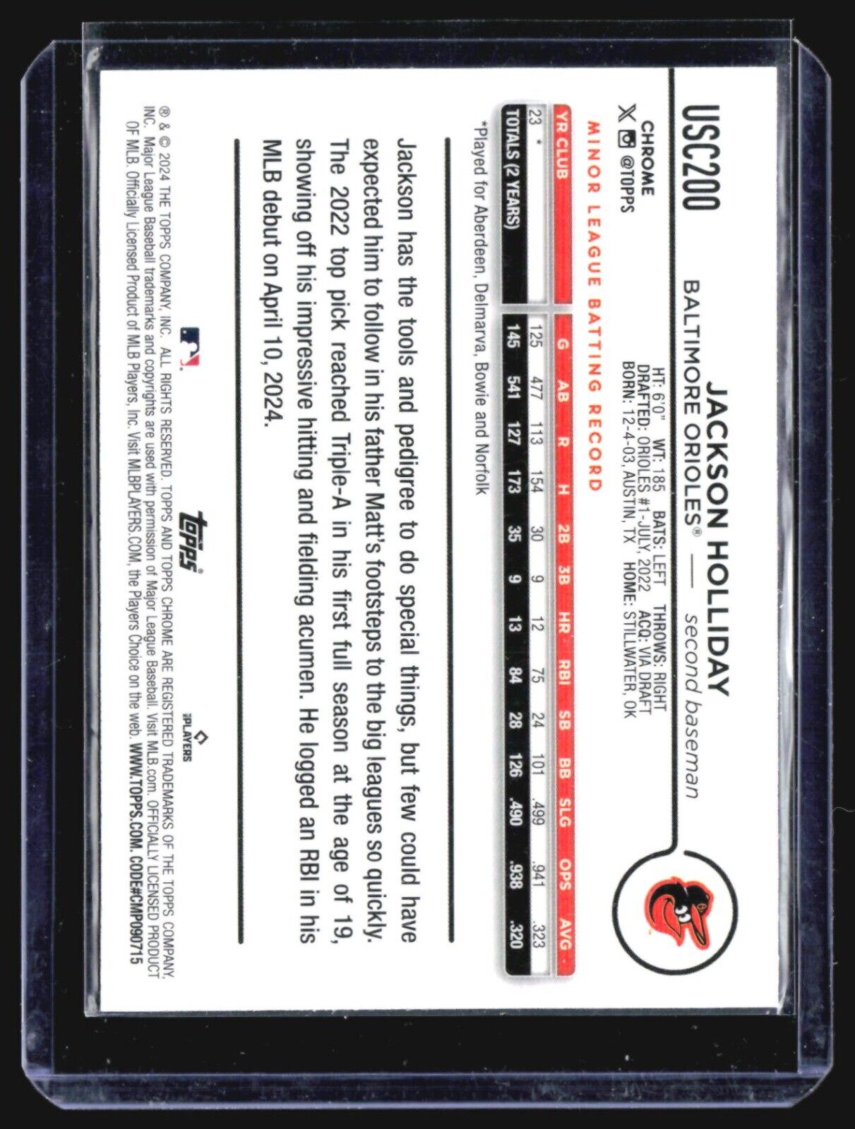 2024 Topps Chrome Update Series - #USC200 Jackson Holliday (RC) Xfractor