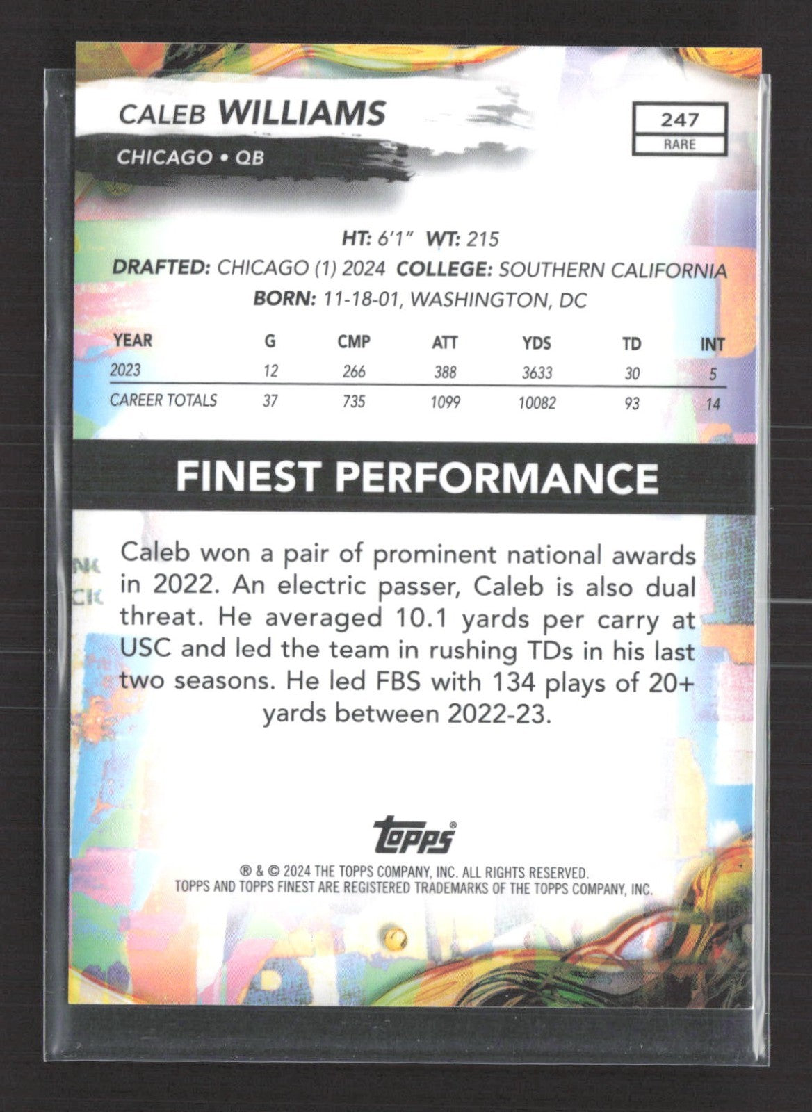 2024 Topps Finest - Rare Caleb Williams #247 Black Refractor (RC) /15