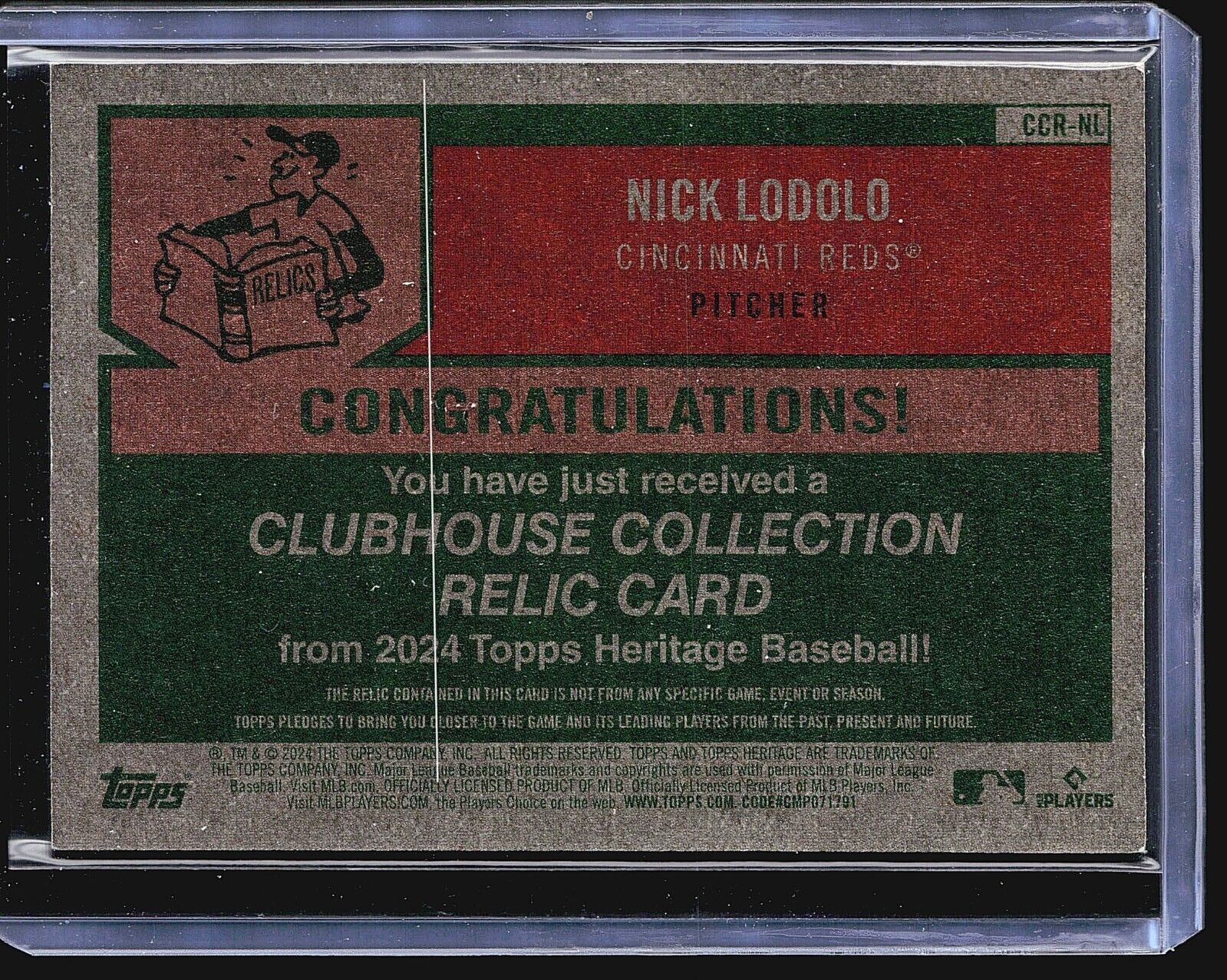 2024 Topps Heritage - Clubhouse Collection Relics #CCR-NL Nick Lodolo Jersey