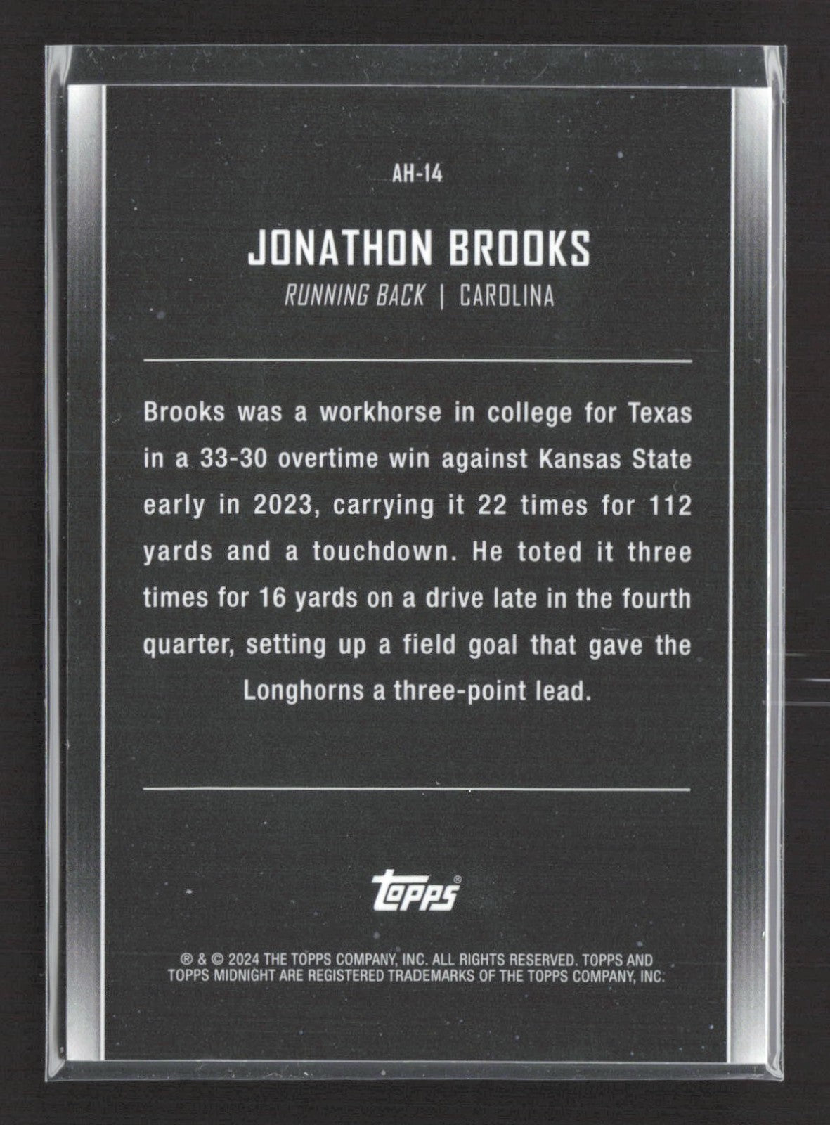 2024 Topps Midnight After Hours Jonathon Brooks Black 1/1 Rc #AH-14