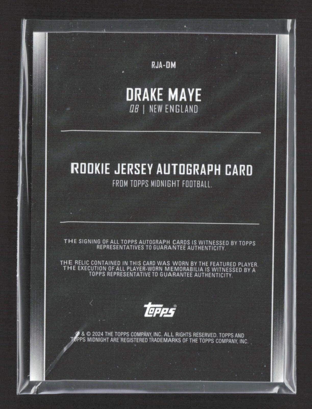 2024 Topps Midnight Drake Maye Orange Rc Patch Auto /75 #RJA-DM