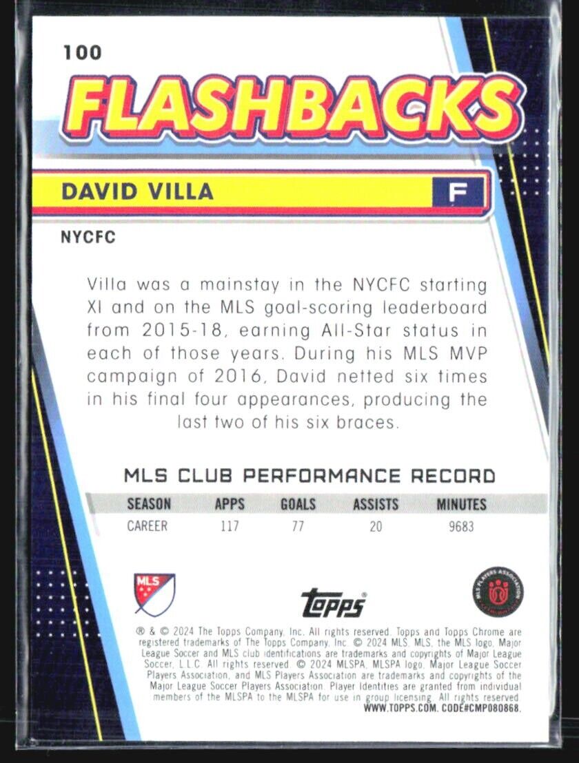 2024 Topps MLS Chrome Sapphire Black David Villa Flashbacks /10 #100