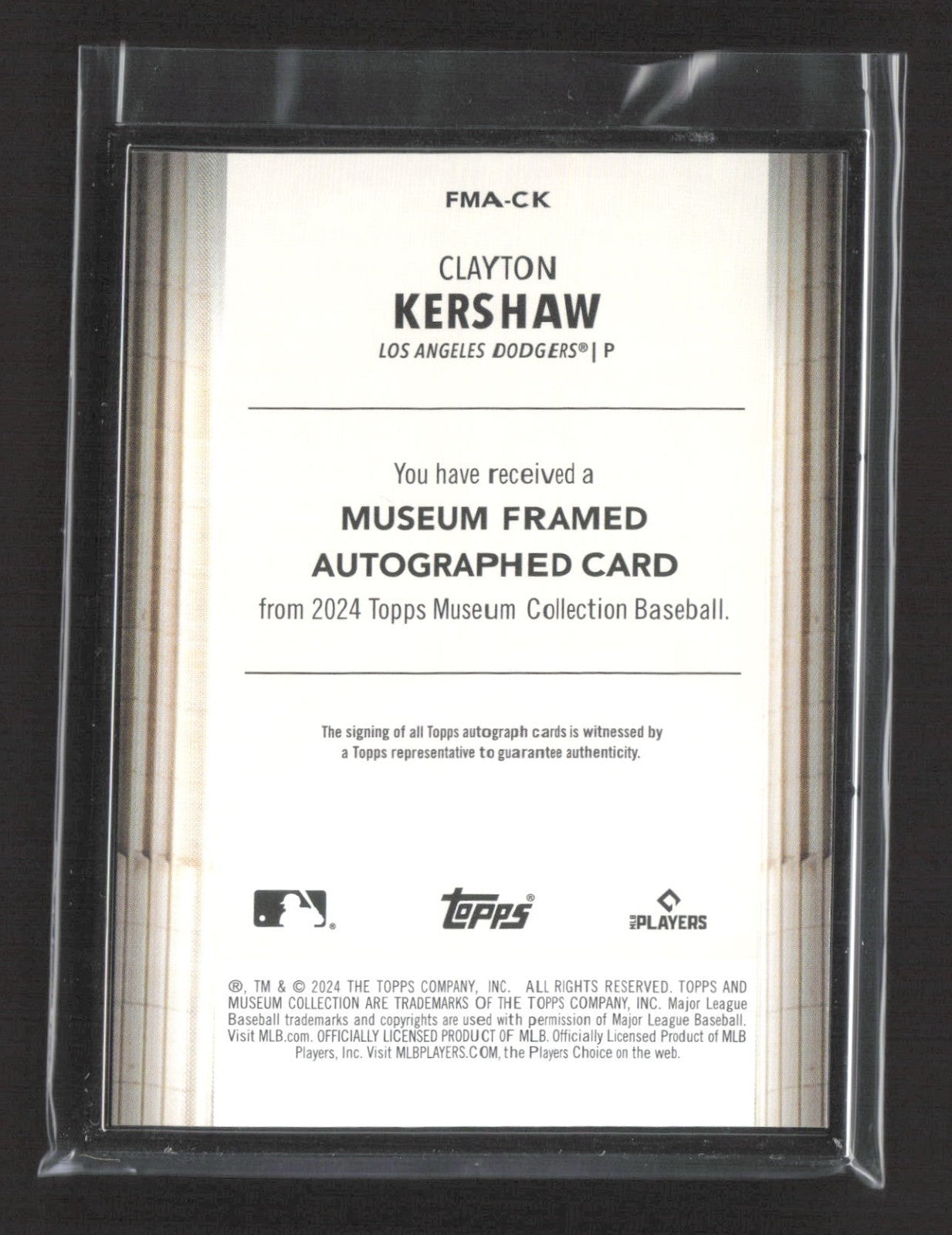 2024 Topps Museum Framed Auto Clayton Kershaw #FMA-CK Black Frame /5 Auto