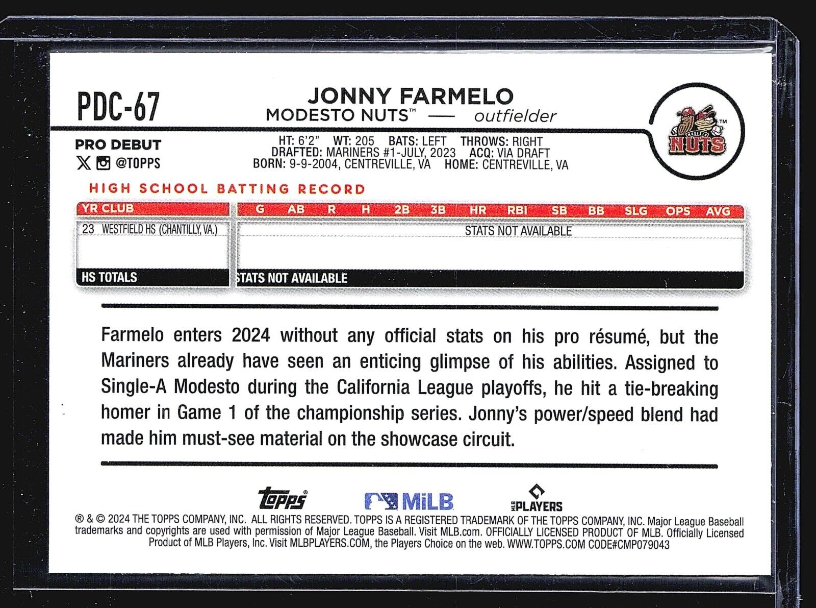 2024 Topps Pro Debut - #PD-67 Jonny Farmelo (RC) Xfractor