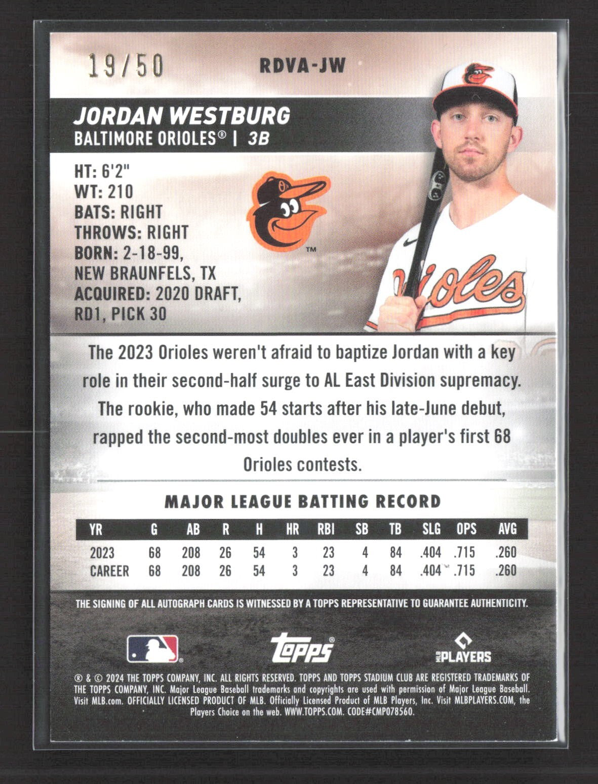 2024 Topps Stadium Club - Autographs Jordan Westburg #SCBA-JW Rc Auto