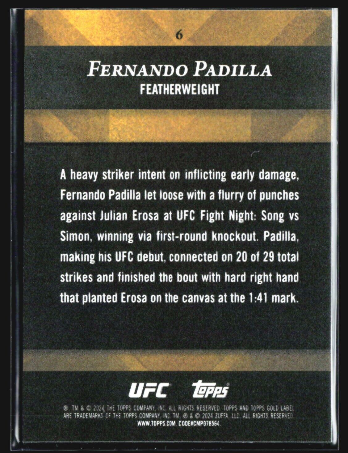 2024 Topps UFC Gold Label Fernando padilla Class 1 Green Rc #6