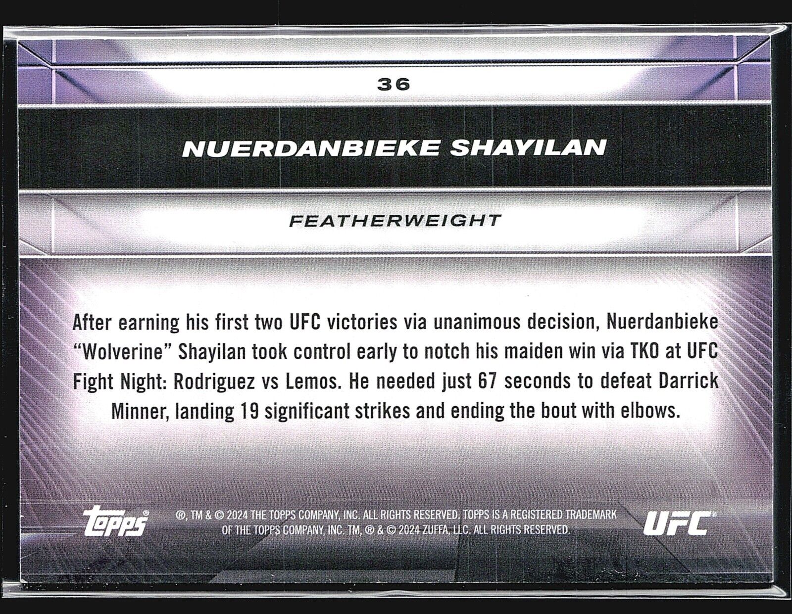2024 Topps UFC Knockout Nuerdanbieke Shayilan Bronze Rc /250 #36