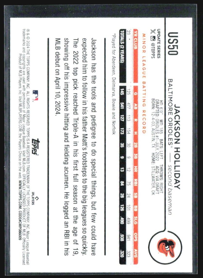 2024 Topps Update Series - #US50 Jackson Holliday (RC) Rainbow Foil