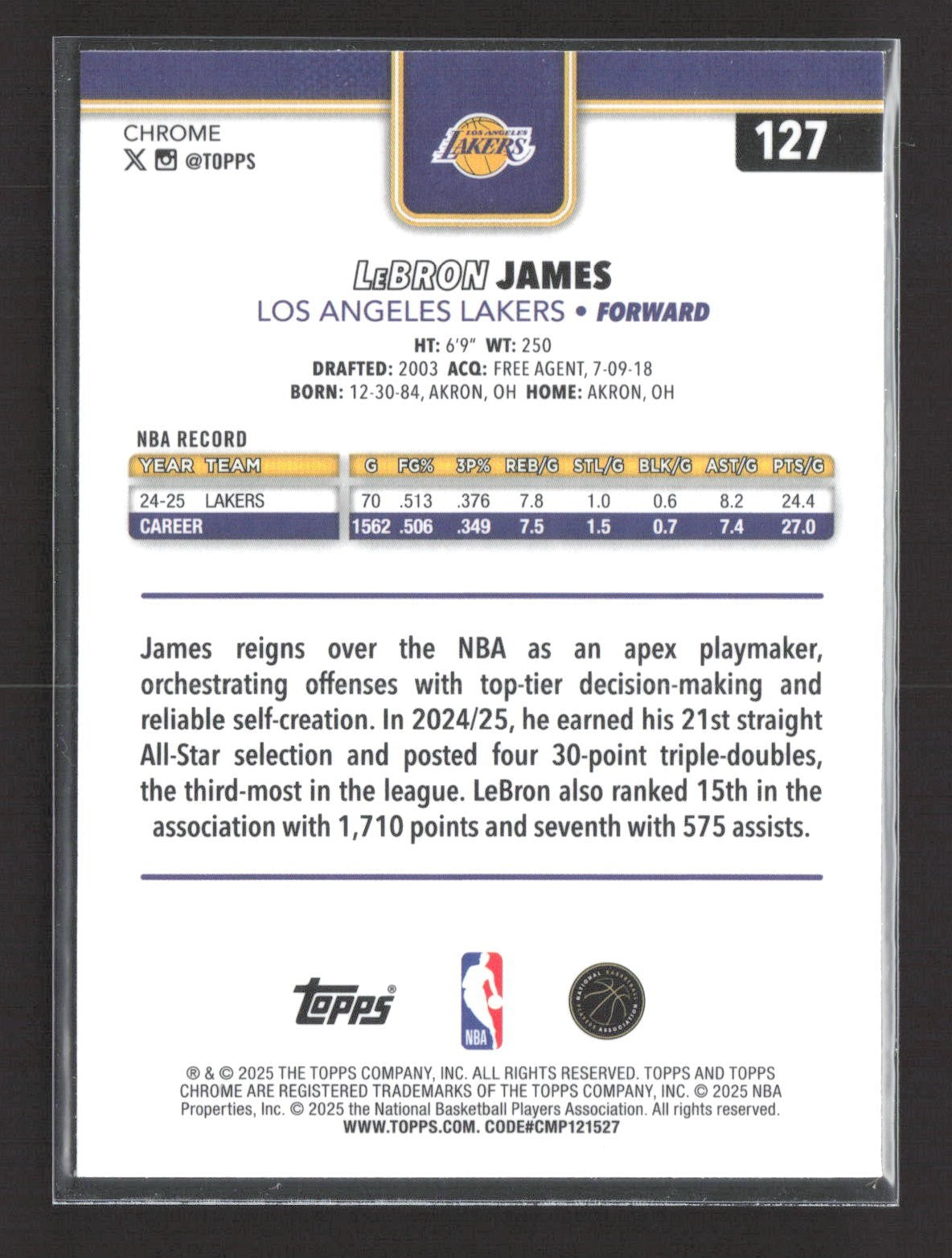 2025-26 Topps Chrome - LeBron James #127 Green Refractor /99