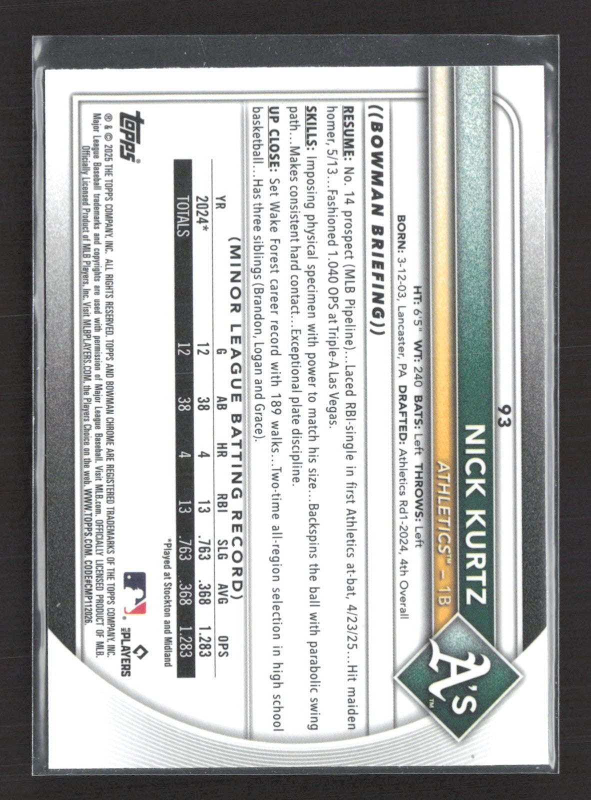2025 Bowman Chrome Nick Kurtz Aqua Lava Refractor Rc /199 #93