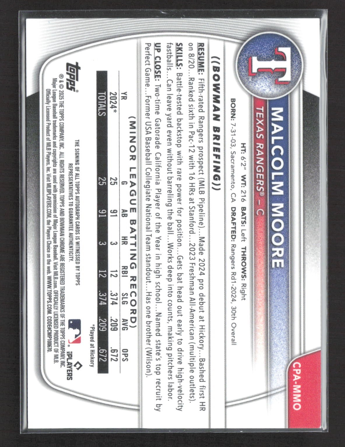 2025 Bowman Chrome Sapphire Malcolm Moore 1st Green Auto /99 #CPA/MMO