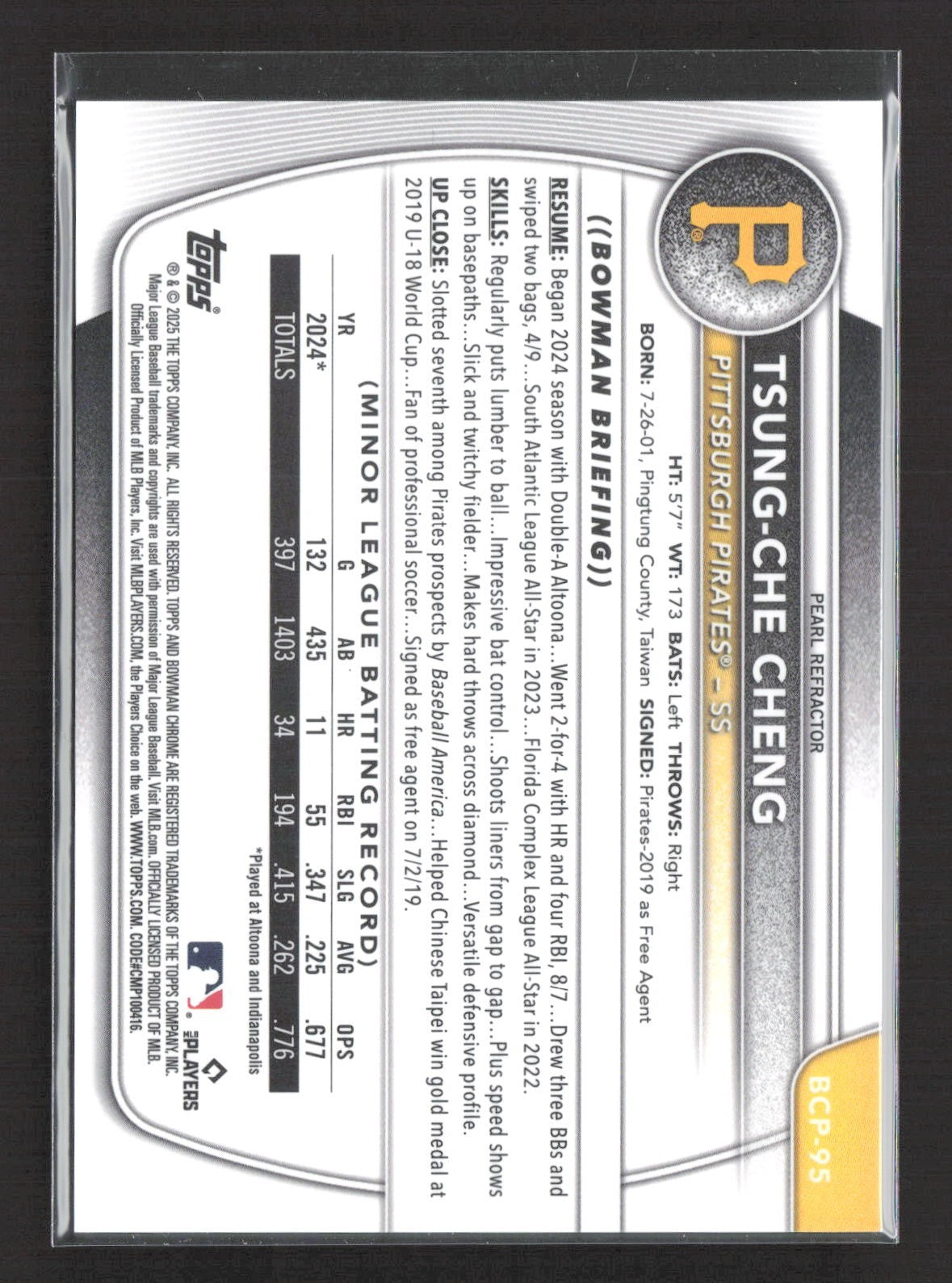 2025 Bowman Chrome Tsung-Che Cheng Pearl Refractor #BCP-95