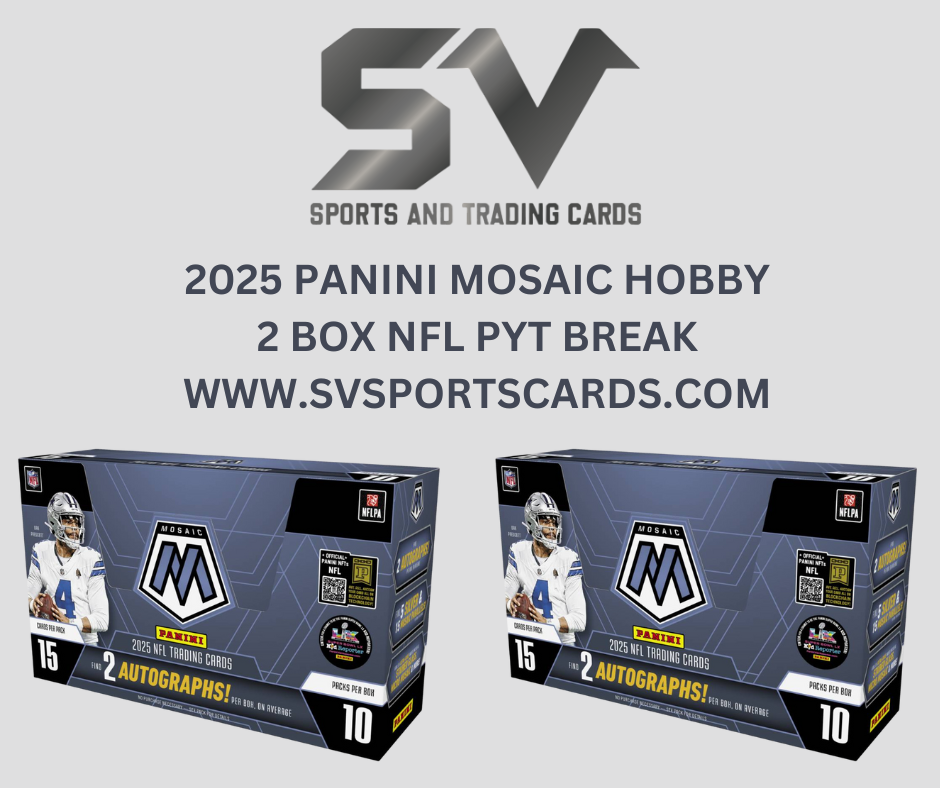 Pick your team break (2 boxes) 2025 Panini Mosaic Football Hobby WILL BREAK WHEN FILLED (TYPICALLY IN 48 HOURS) local... Read more