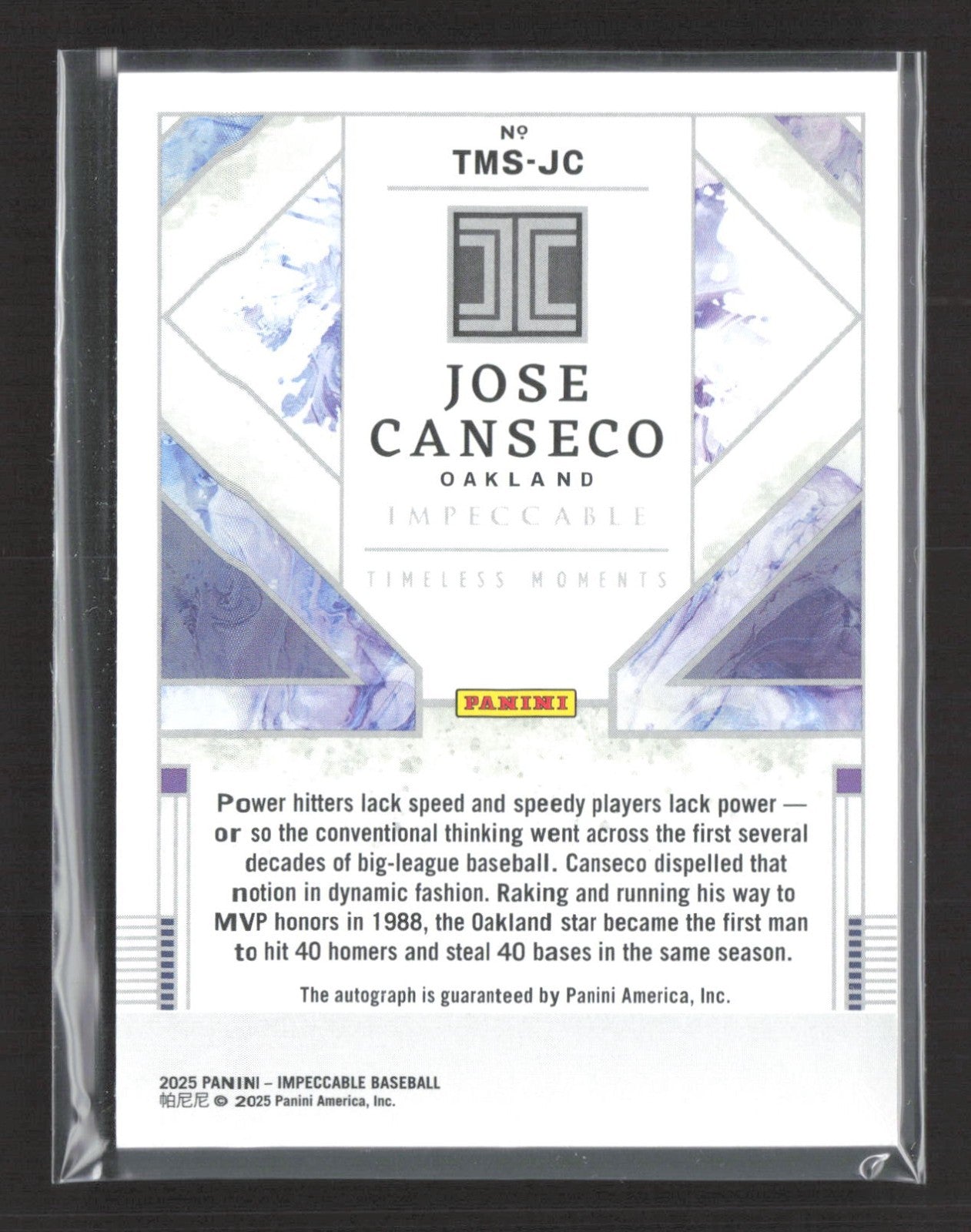 2025 Panini Impeccable Jose Canseco Timeless Moments Auto /25 #TMS-JC